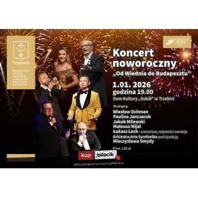 bilety: 1 stycznia 2026 o godz. 19.00 zapraszamy do Domu Kultury "Sokół" w Trzebini, ul. Kościuszki 74 na wyjątkowy koncert, który zabierze publiczność w muzyczną podróż przez dwa miasta Europy - elegancki Wiedeń i pełen temperamentu Budapeszt. W programie znajdą się utwory mistrzów takich jak Johann Strauss, Franz Lehár, Emmerich Kálmán. Koncert Noworoczny "Od Wiednia do Budapesztu" artyści: Wiesław Ochman, Paulina Janczaruk, Jakub Milewski, Mateusz Mijal, Orkiestra Arte SymfonikoWyjątkowy koncert, który zabierze publiczność w muzyczną podróż przez dwa miasta Europy – elegancki Wiedeń i pełen temperamentu Budapeszt. W programie znajdą się utwory mistrzów takich jak Johann Strauss, Franz Lehár, Emmerich Kálmán. Bilety do nabycia na: KupBilecik.pl |